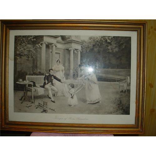 French antique print of Napoleon with his son, the King of Rome (Roi de Rome), made in late 1800's by Jules Girardet, specialist of engraving of French history and specially during French revolution and Napoleon period.: