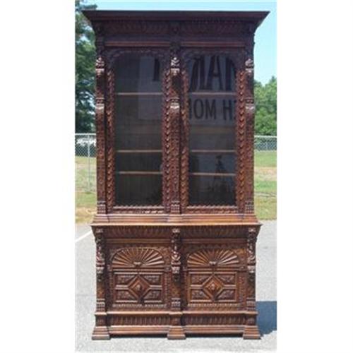 This beautiful one-of-a-kind French Oak hand carved bookcase makes a very exquisite statement!