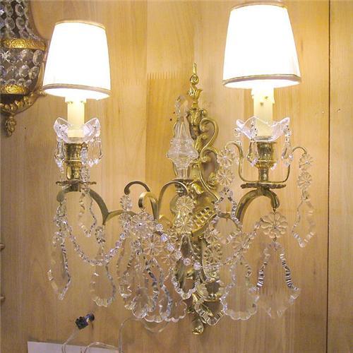 <tr><td>Title:French bronze and Crystal wall sconces </td></tr>