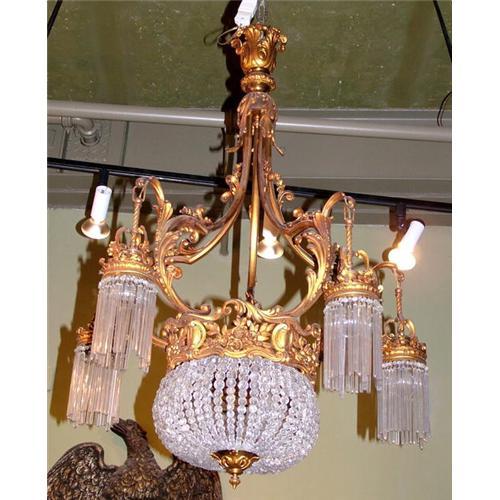 <tr><td>Title:French bronze and crystal Chandelier </td></tr>