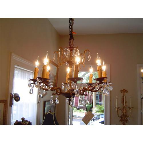 gorgeous 8 lights 19 century chandelier , bronze and beautifull crystal pendants and prismes .the height is without the chain . it is the chandelier itself only