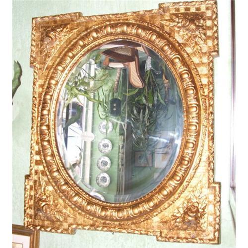 <tr><td>Title:French carved Oval Mirror Square frame</td></tr>