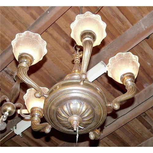 <tr><td>Title:French chandelier with original shades 5 L</td></tr>