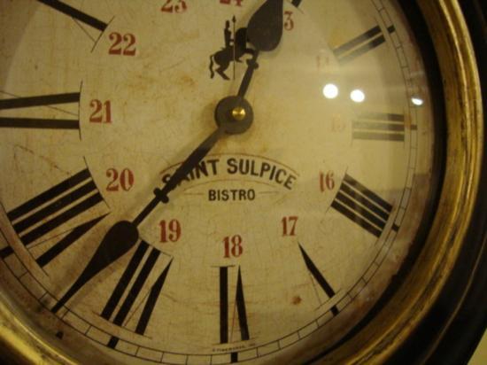 Very nice reproduction of French clock "Paris, Cafe des Artistes, 112 Rue du Theatre". This clock is made individually, hand assembled with the finest composents...hand-antiqued, die-cut steel hands with time-worn patinas and beautifully finished frame. It is a quarz clock movement. It is a new item! We ship from Texas (not from France). Diameter 18"
