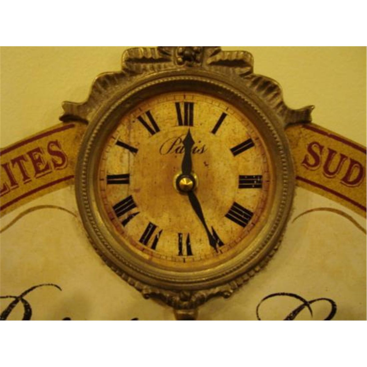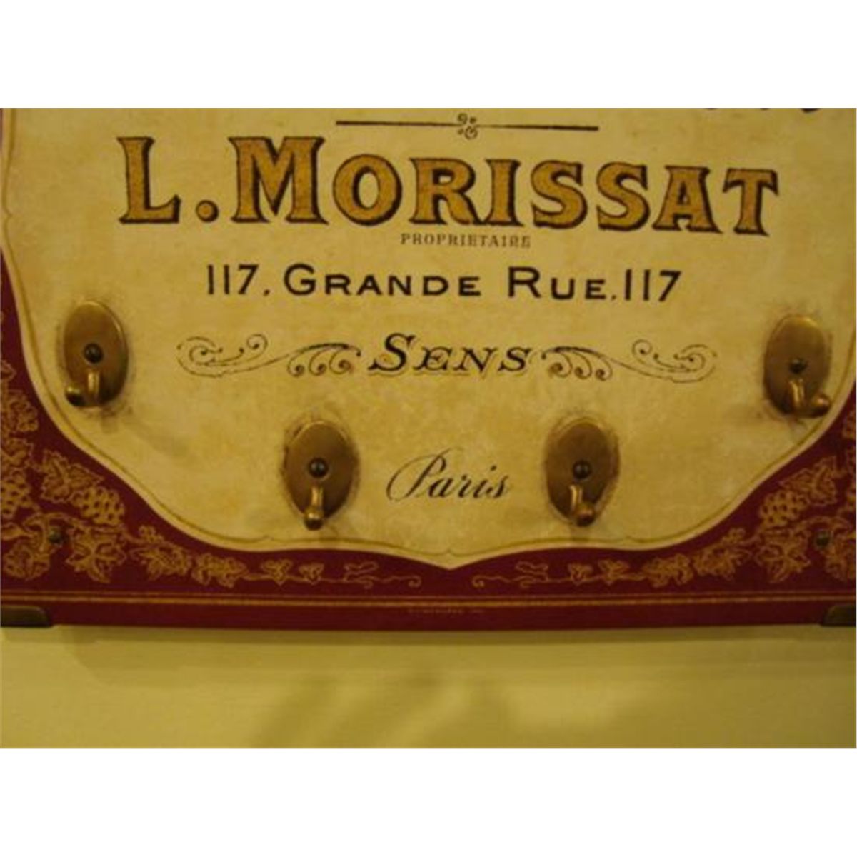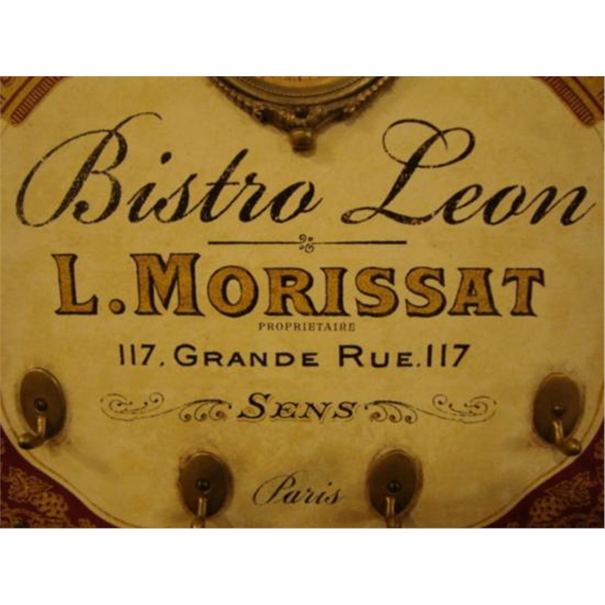 Very nice reproduction of French clock "Bistro Leon, L. Morissat, Paris" with its key holders. This clock is made individually, hand assembled with the finest composents...hand-antiqued, die-cut steel hands with time-worn patinas and beautifully finished frame. It is a quarz clock movement. It is a new item! We ship from Texas (not from France).15.25" x 15.75"