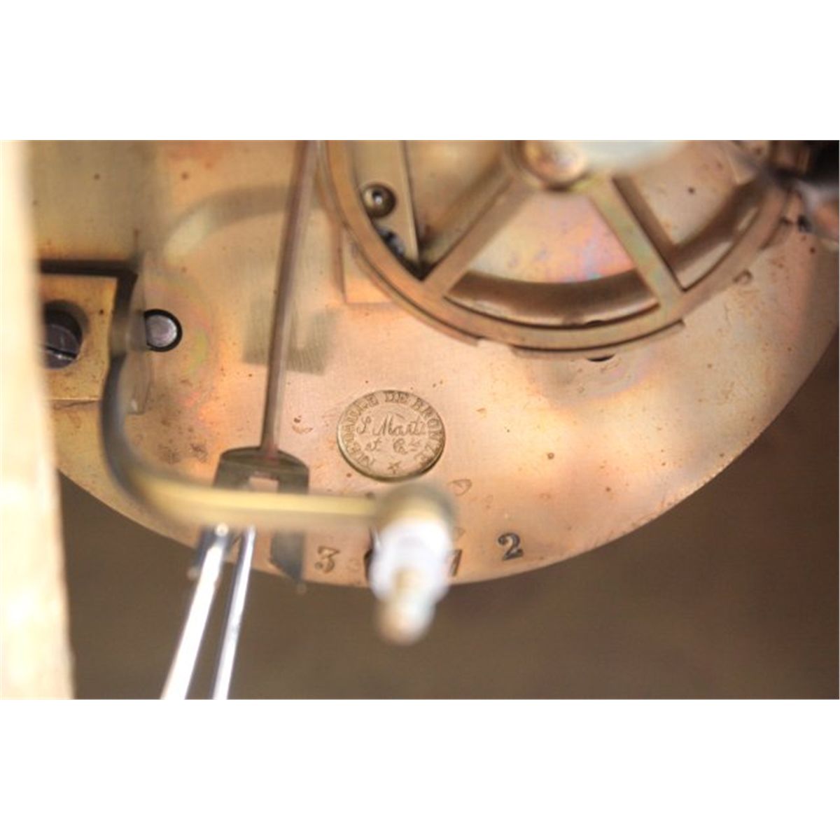 Pendulum & key. Approx. 21" H. Please read our terms of sale.