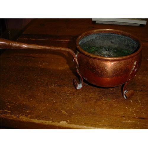 It is a hand hammered and dovetailed (you can see on photo #3) piece. This copper pot was used to make chocolate or jams. H-5"/ Diameter-6".