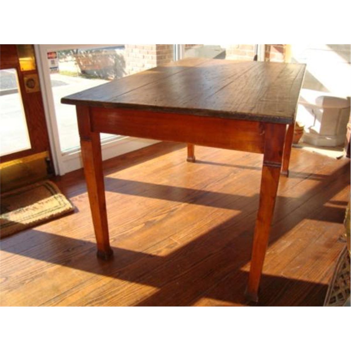 Here is an Antique French country Farm table, made of French solid pine in the early 1900's by a cabinet maker from Champagne Region (Eastern France). Two drawers on the front. w:55"/ d: 32"/ h: 30.5". It will be great for a kitchen table or used as a desk. Very sturdy, nice patina!!! A nice piece and a very good price for this small part of France in your home. For the shipping...don't worry,we ship from Texas (not from France)!
