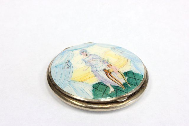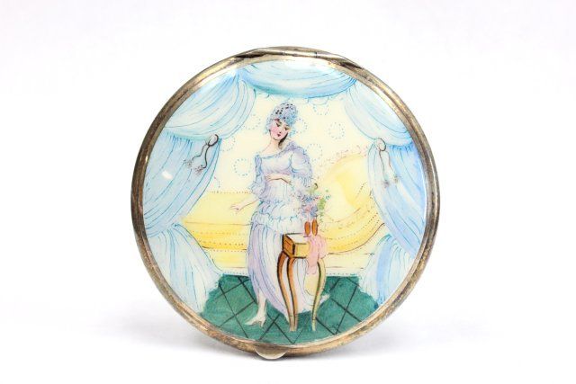 Depicting "Lady in Boudoir". Approx. 2" Diam.