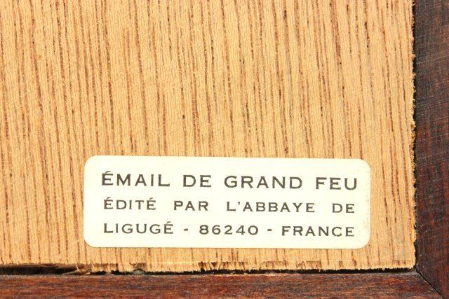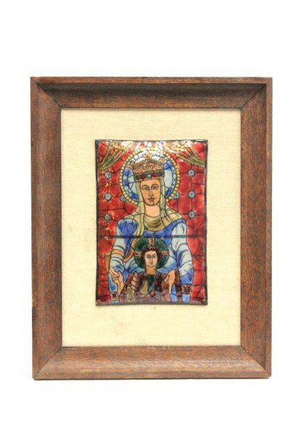 Ca. 20th c. Plaque approx. 6.5" x 4.5", 17" x 9.5" with frame. Good condition.
