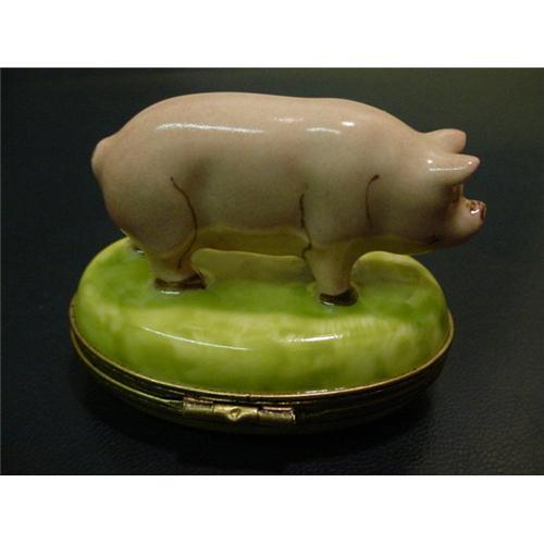 Here is a SUPERB "pig" hand-painted Porcelain box. Excellent condition, hinges and clasps work fine.