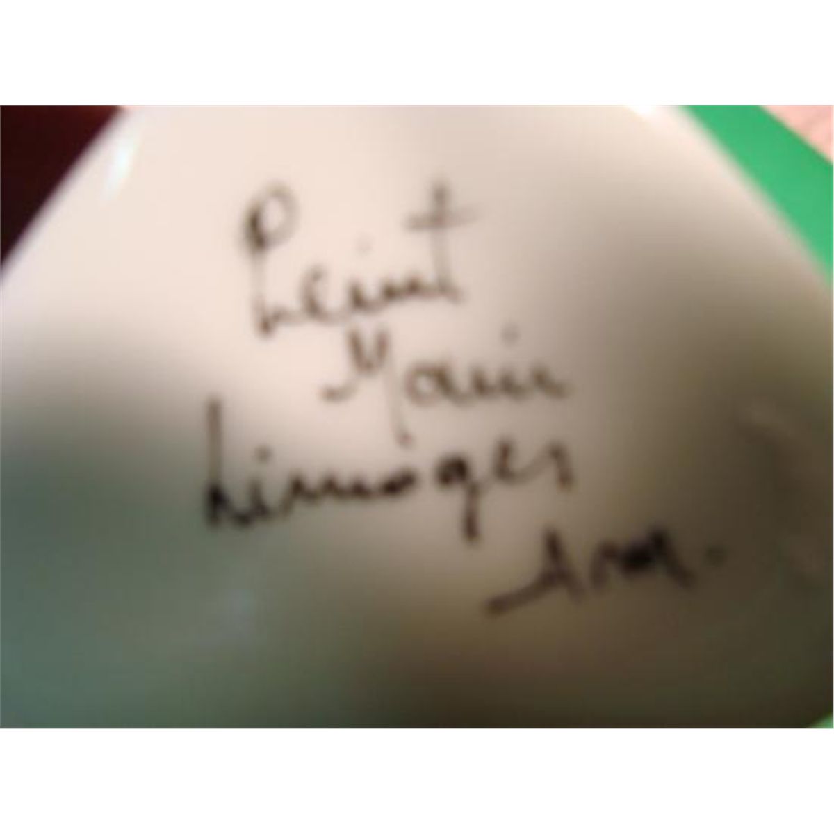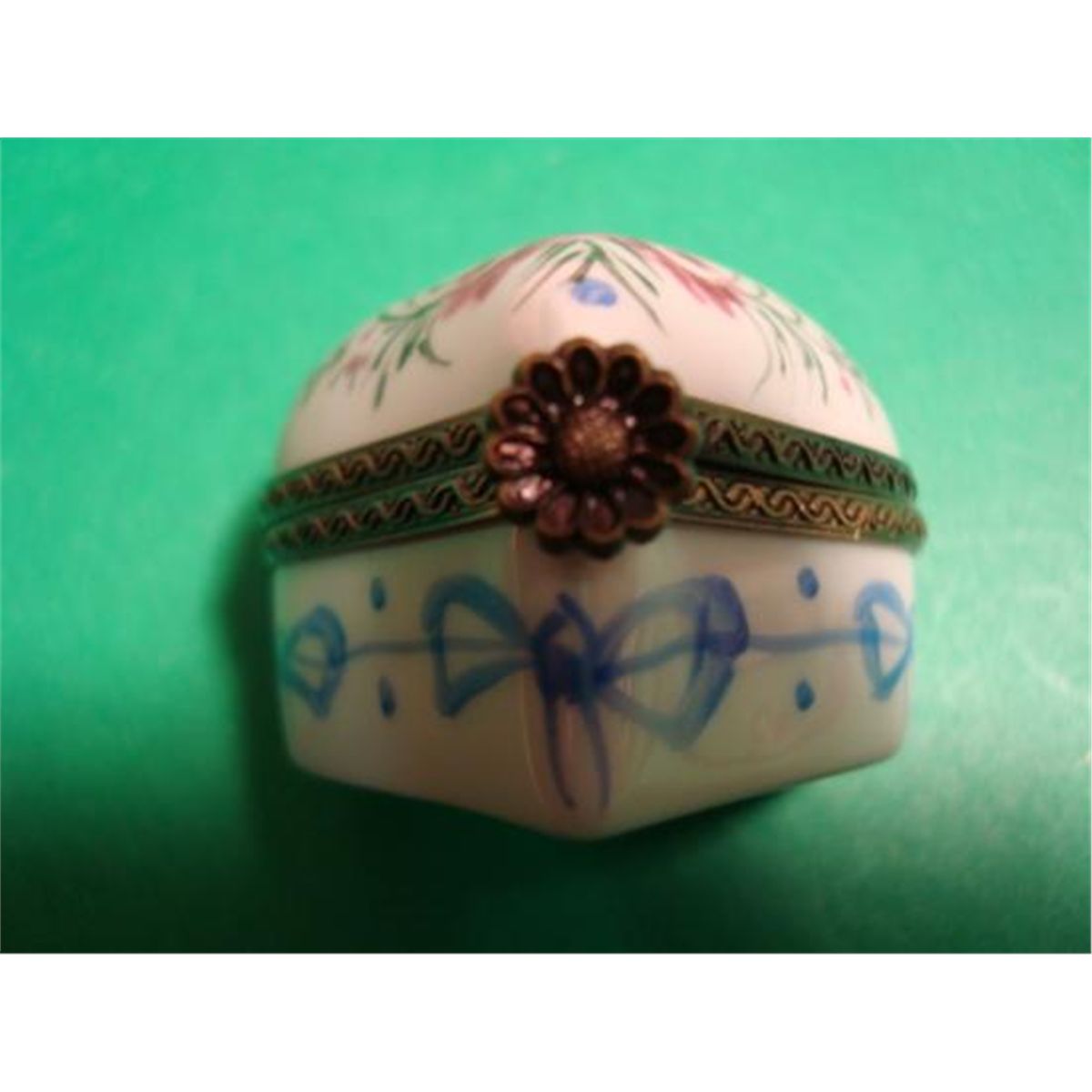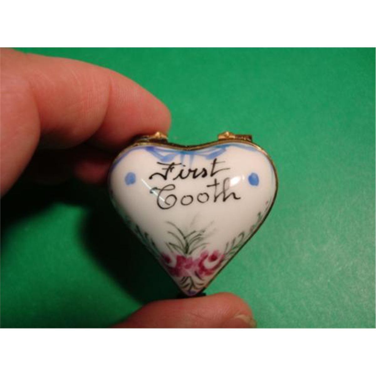 Authentic hand-painted Limoges box signed by artist from a famous studio! This box was created by an artist, graduate of one of the most prestigious French Fine Porcelain schools. Here is a SUPERB "First tooth" hand-painted Porcelain box. Excellent condition, hinges and clasps work fine. This Limoges box is marked "Peint main" (Hand-painted) Limoges France, signed: A-M, as shown in picture. It is in mint condition (No chips, cracks or repairs). Would be a great value to any Limoges box collection. For the shipping...don't worry, we ship from Texas (not from France)!h-1.25/ w-1.5/ d-1.5