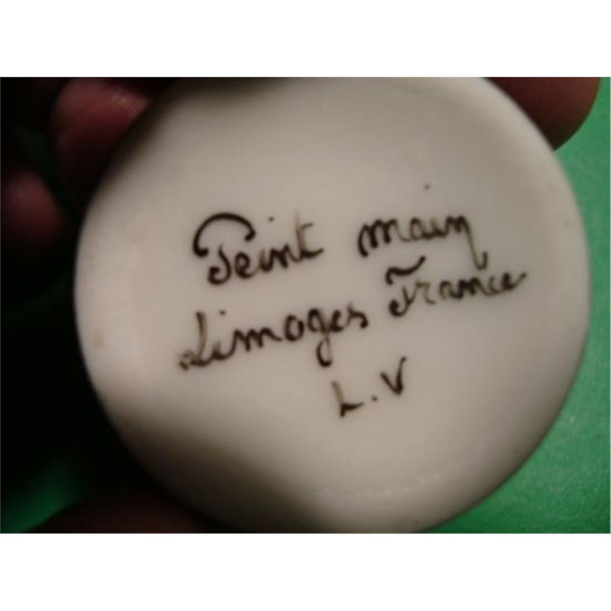 Authentic hand-painted porcelain Limoges box signed by artist from a famous studio! This box was created by an artist, graduate of one of the most prestigious French Fine Porcelain schools. Here is a SUPERB "Paloma" hand-painted Porcelain box. Excellent condition, hinges and clasps work fine. This Limoges box is marked "Peint main" (Hand-painted) Limoges France, signed: M-B, as shown in picture. It is in mint condition (No chips, cracks or repairs). Would be a great value to any Limoges box collection. For the shipping...don't worry, we ship from Texas (not from France)!h-1.5"/ w-1.5"/ d-1.5"