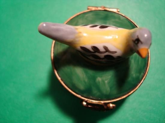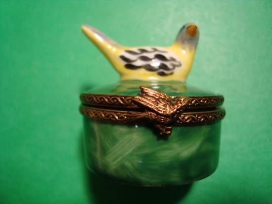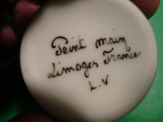 Authentic hand-painted porcelain Limoges box signed by artist from a famous studio! This box was created by an artist, graduate of one of the most prestigious French Fine Porcelain schools. Here is a SUPERB "Paloma" hand-painted Porcelain box. Excellent condition, hinges and clasps work fine. This Limoges box is marked "Peint main" (Hand-painted) Limoges France, signed: M-B, as shown in picture. It is in mint condition (No chips, cracks or repairs). Would be a great value to any Limoges box collection. For the shipping...don't worry, we ship from Texas (not from France)!h-1.5"/ w-1.5"/ d-1.5"