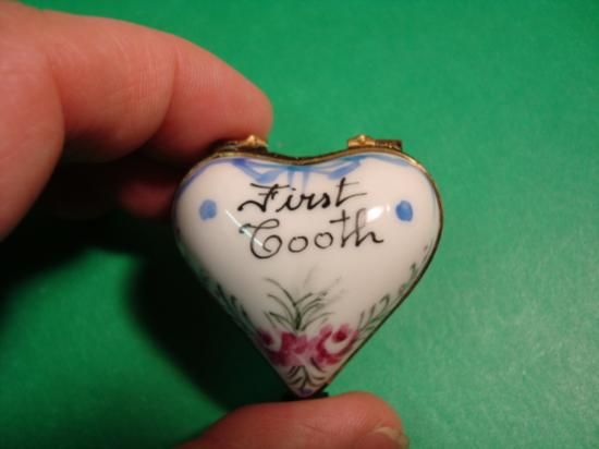 Authentic hand-painted Limoges box signed by artist from a famous studio! This box was created by an artist, graduate of one of the most prestigious French Fine Porcelain schools. Here is a SUPERB "First tooth" hand-painted Porcelain box. Excellent co
