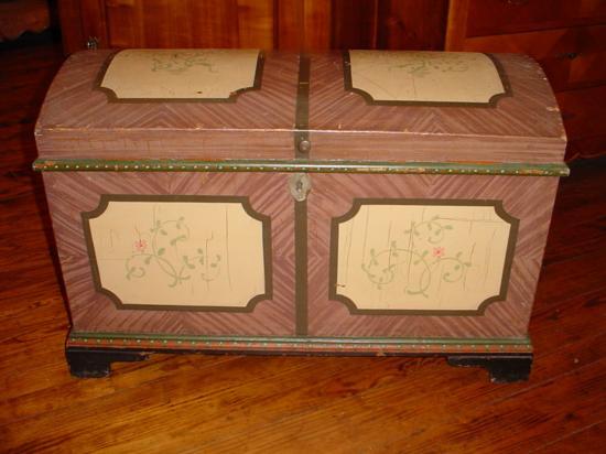 This wonderful French hand-painted trunk from Alsace (Eastern France)was used in the 1860's. I am not sure the paint is the original but it seems old. No key for this trunk. Excellent condition!!! From our last trip in France. Don't worry for the shipping...we ship from Texas (not from France). h-27/ w-39.75/ d-20.5