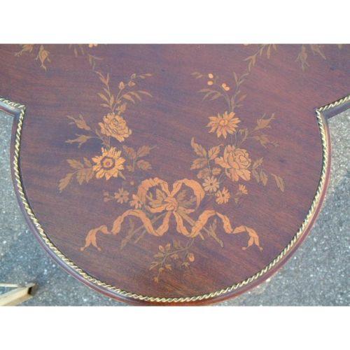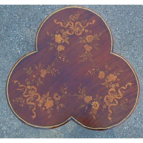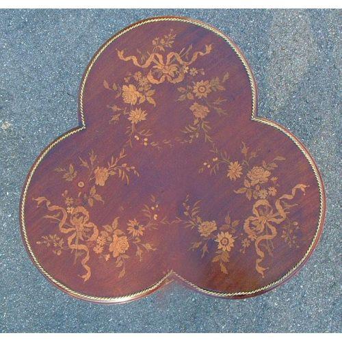 Antique French inlaid mahogany clover leaf table c1880. Measure 22 inches across, and 29 and one quarter inches high.