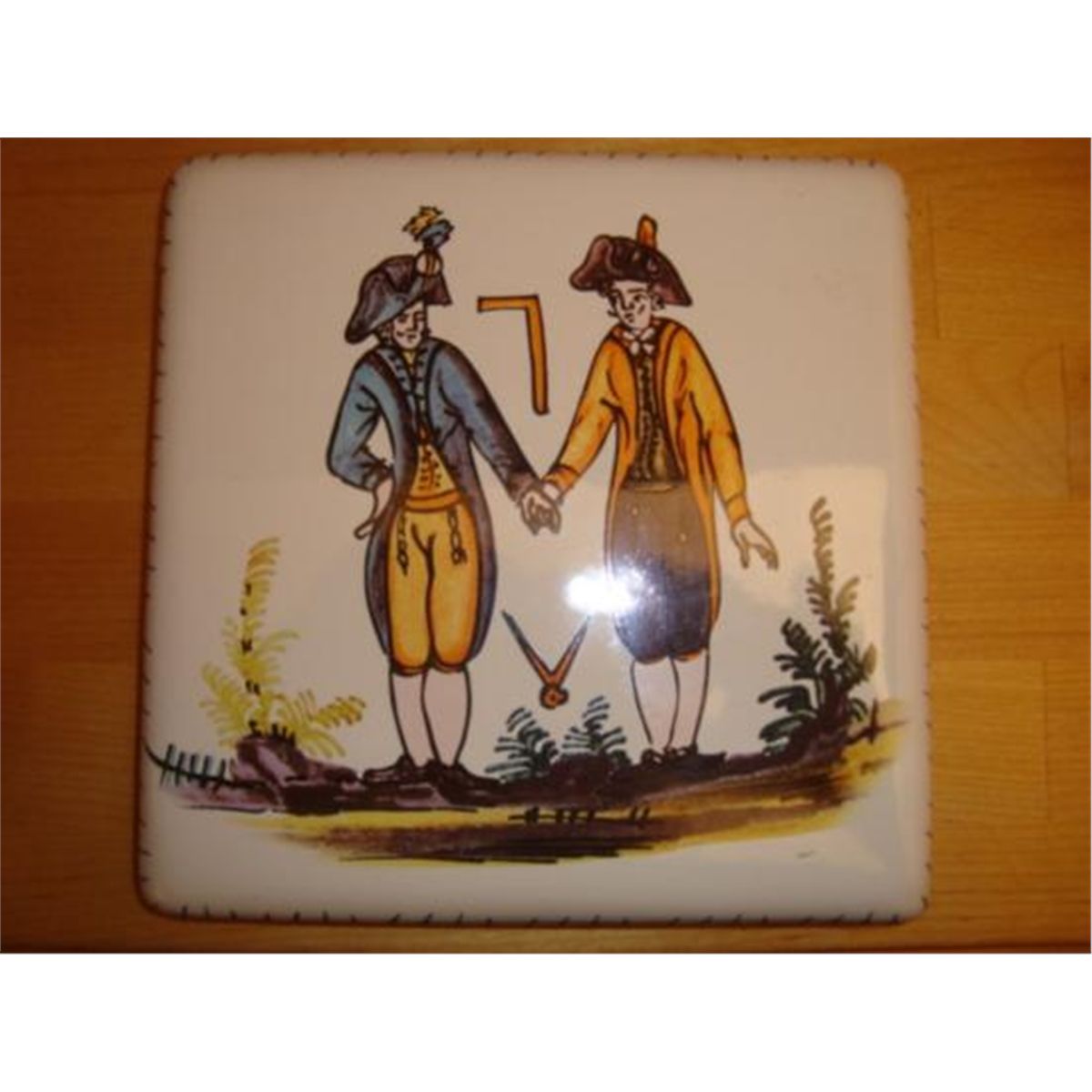 Here is a French table mat made of earthenware with several Masonic symbols painted on one side. h- 0.79"/ W- 7.09"/ d- 7.09" Excellent condition. We ship from Texas (not from France)
