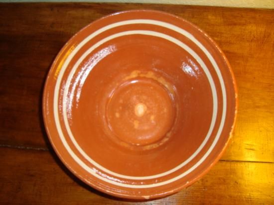 This French mixing bowl (the legendary French tian) was used in a French farmhouse from Alsace, Eastern France in late 1800's. It was used for several years in French kitchens for washing dishes or cooking. Made from terra cotta, it was also used for double-duty as an oven bowl. No chips, parts of glaze missing inside the bowl (but it is a very old bowl used for a very long time!!!), no cracks. h: 4.5"/ diameter: 11". You can see that this bowl was glazed on the inside and outside for ease of cleaning. Good condition for its age! We ship from Texas (not from France). #ALSPOTBOWL1