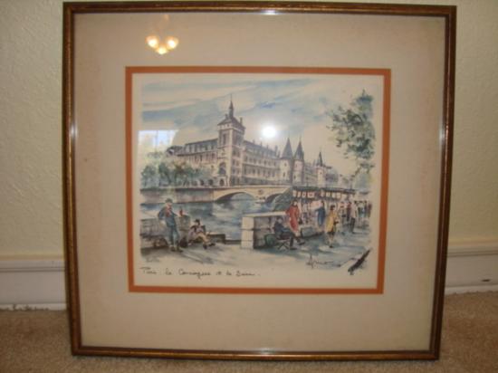 French old print of Paris " Paris, la Conciergerie et la Seine" signed Arno. Very good condition (no damage)...the frame is new. h-14.75"/ w-15.75". This print will be a great part of France in your home! Don't worry for the shipping...we ship from Texas (not from France!)