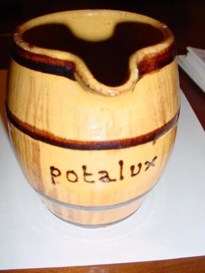 French pitcher from Eastern France, in PERFECT CONDITION!. This charming Pottery with its inscription "Potalux", dating around 1950's, with its brown-yellow color. h-5"/ w-5.75"/ d-4"Perfect condition! We ship from Texas (not from France)!