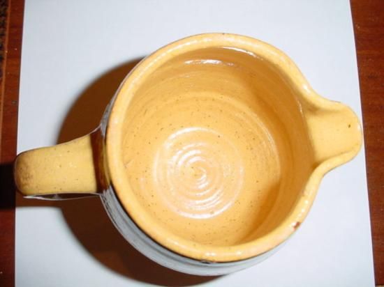 French pitcher from Eastern France, in PERFECT CONDITION!. This charming Pottery with its inscription "Potalux", dating around 1950's, with its brown-yellow color. h-5"/ w-5.75"/ d-4"Perfect condition! We ship from Texas (not from France)!