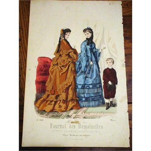 French antique print "Journal des Demoiselles": H:11" W:7". This print was made in the 1870's...the colors was hand-made!