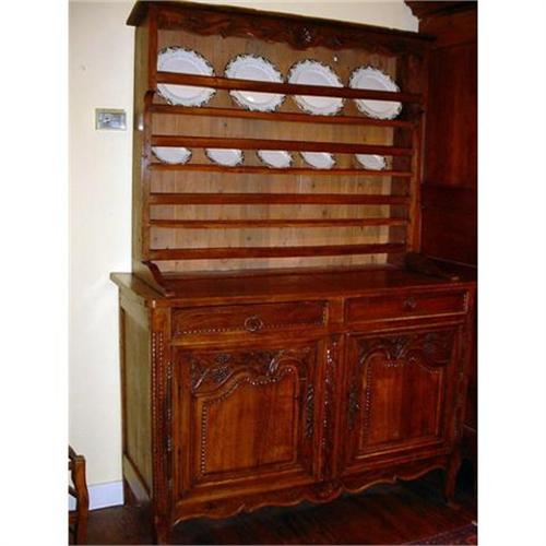 We recognize the wedding antiques by this hand carved pieces with flowers and bunch of grapes. This hutch was order by a father when his daughter was born...for her wedding gift (In France, it was usual, at this time).