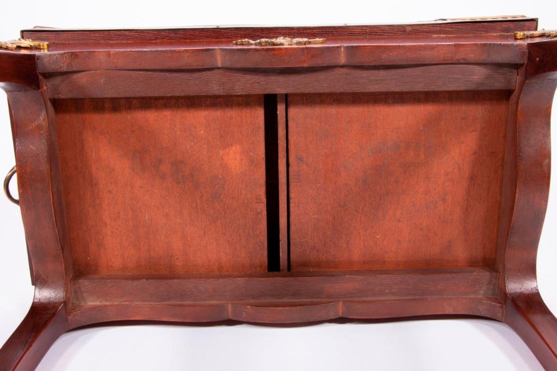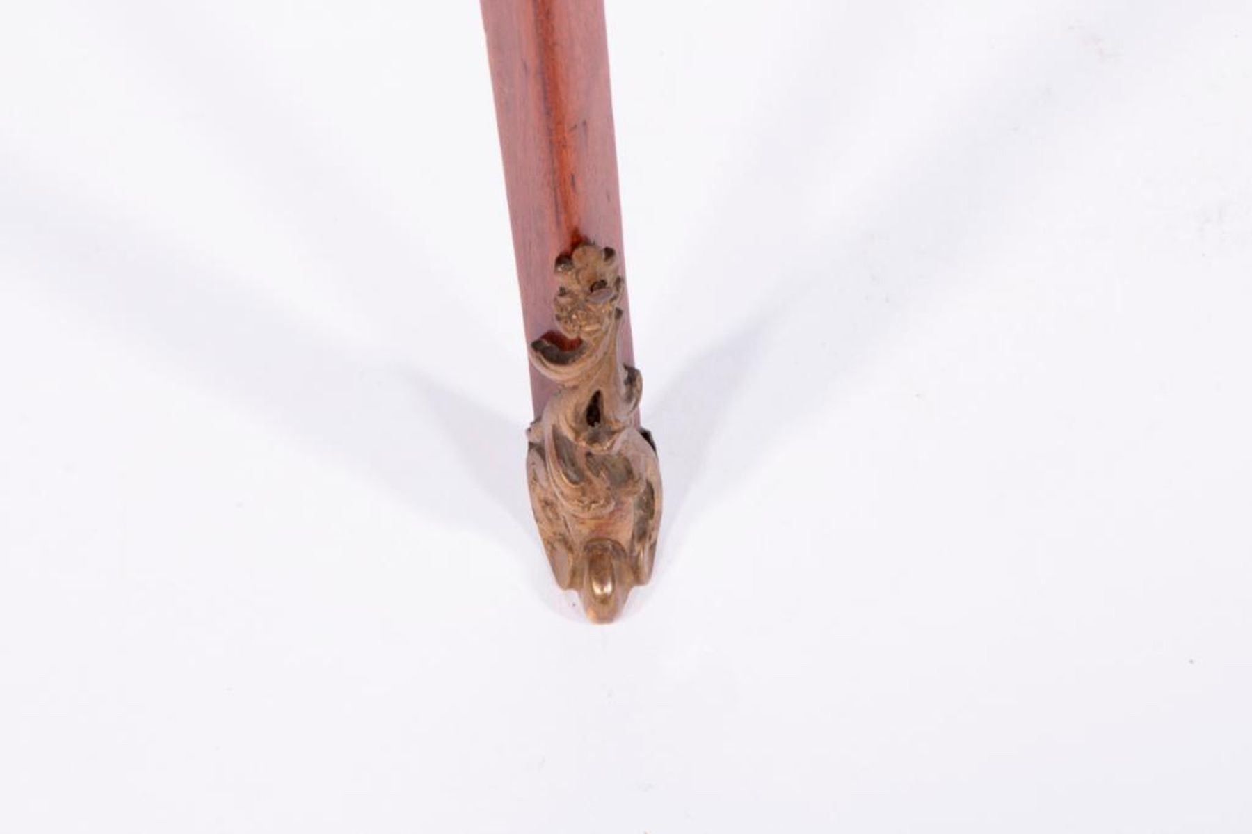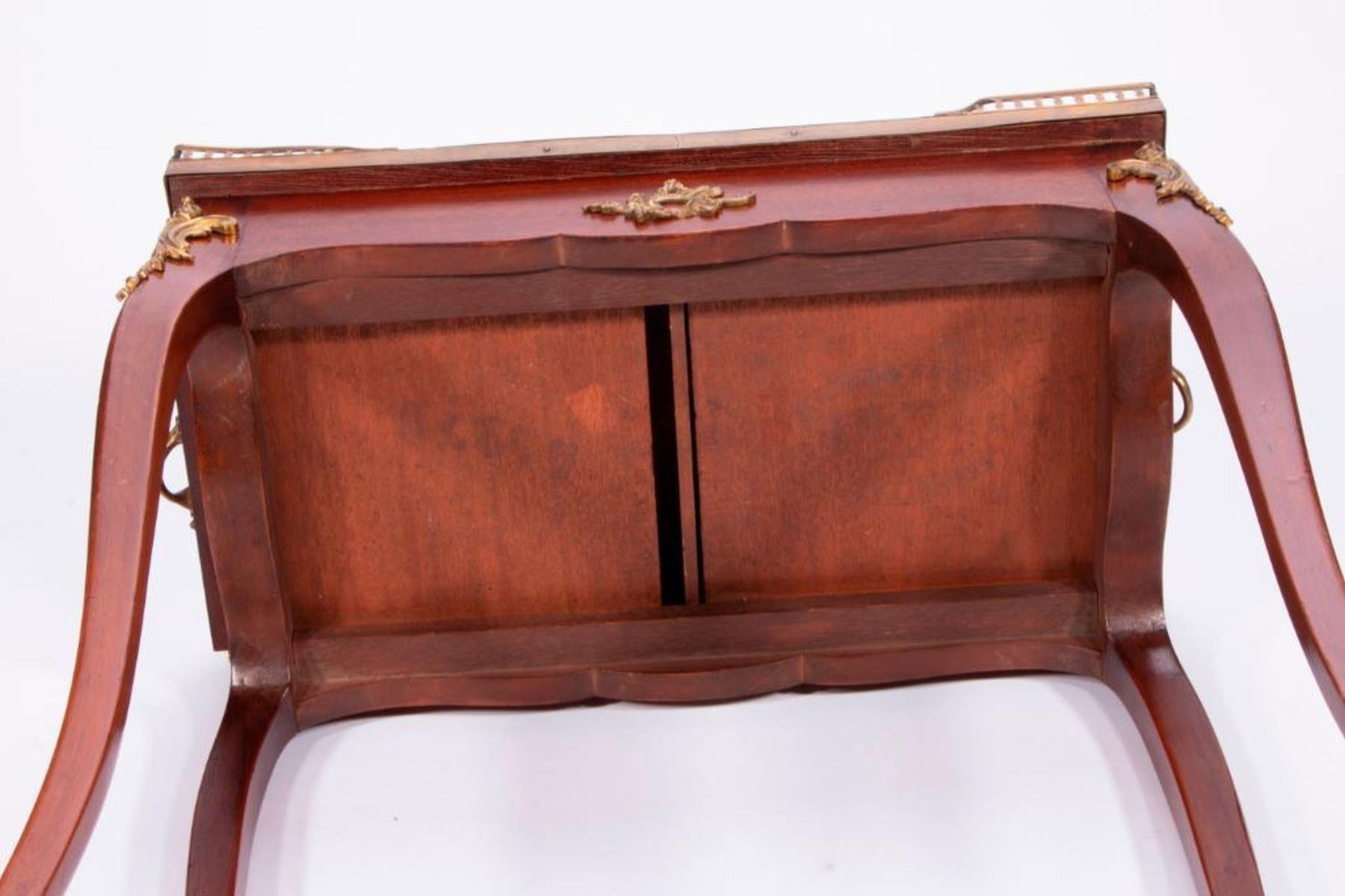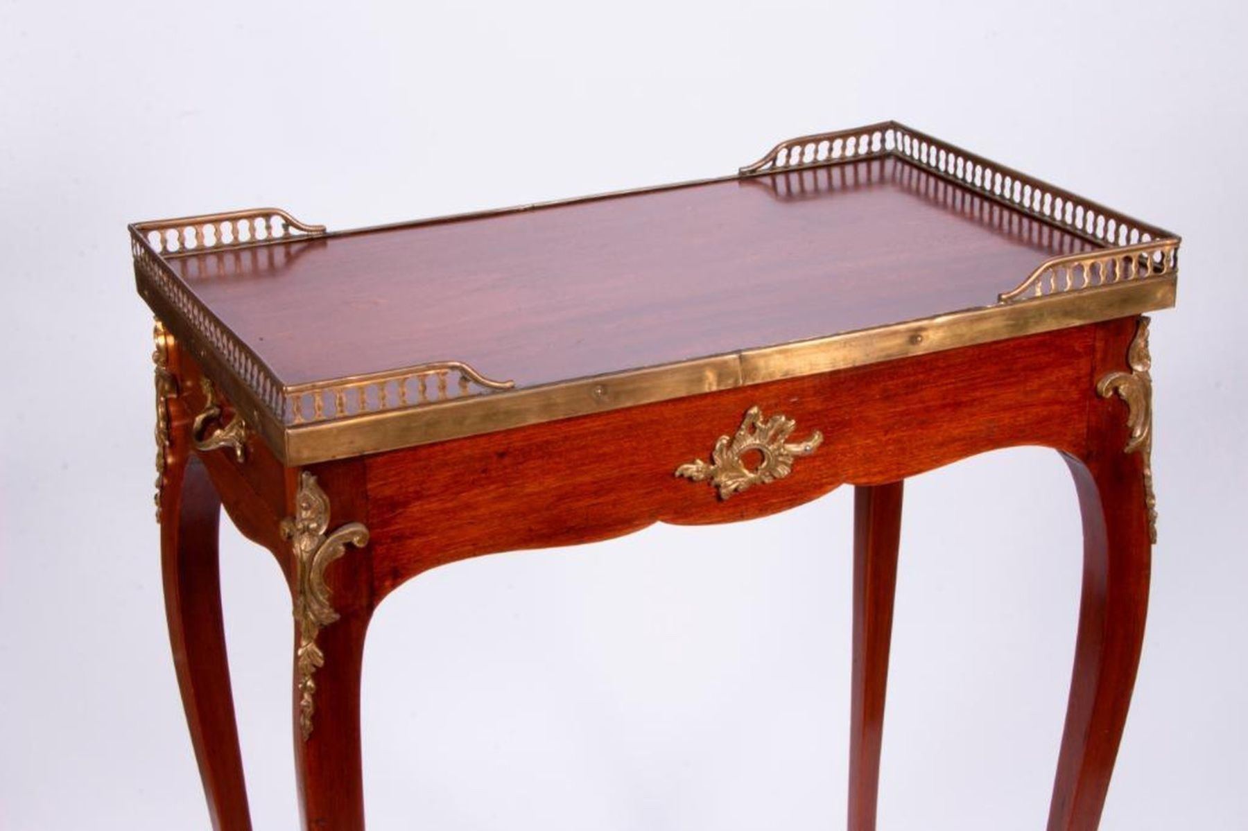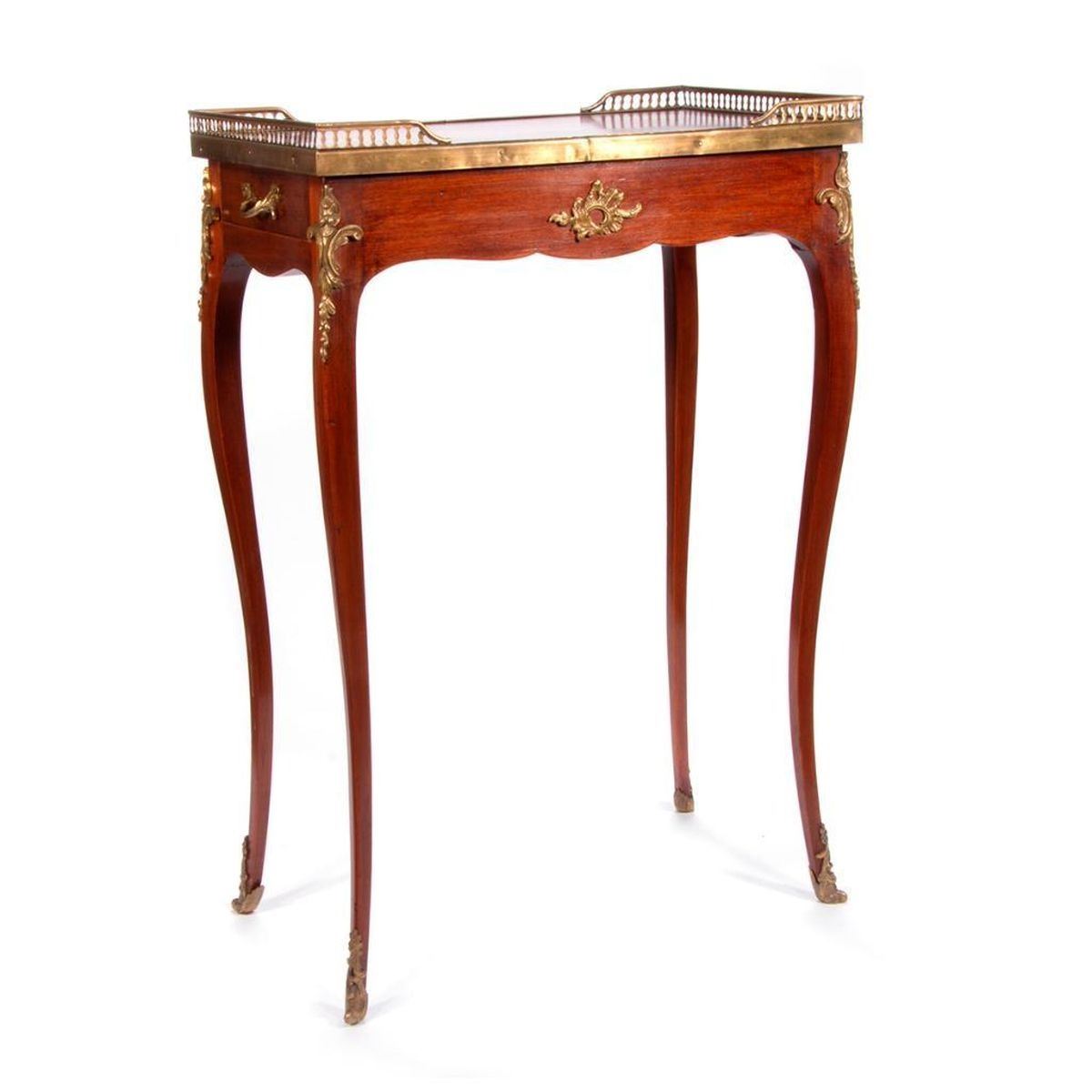 A late 19th century French side table with gilt bronze details. 28 1/4 inches high x 19 1/4 x 11. Items are sold as is. Please inquire about condition if not otherwise stated.