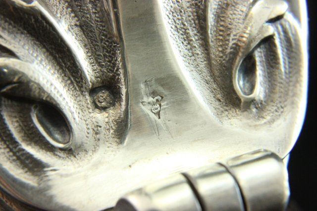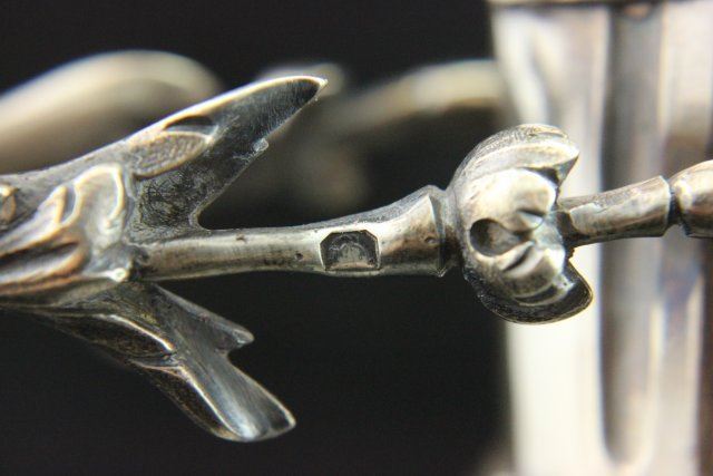 Touch mark on spout & bottom. AD, Alphonse Debain, (1883-1911). Approx. 11 3/4" H. Property of a lady from UN Plaza, NY. (4034) Good condition.