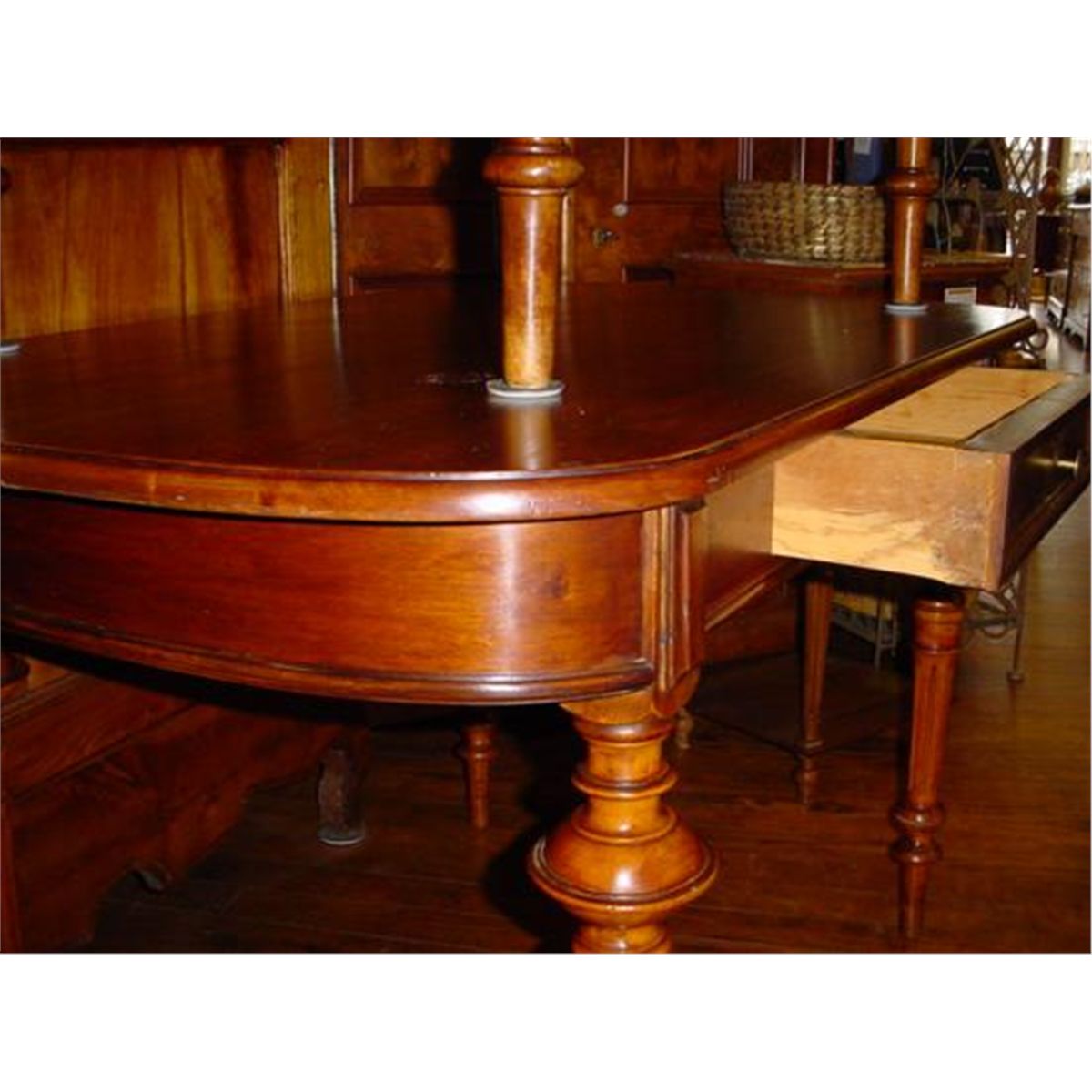 Here is a French table with one drawer, made during King Louis Philippe reign (Circa 1850), by a French cabinet maker from Eastern France (Alsace). This piece made of walnut wood is in very good condition. You can use this piece as a TABLE or as a VERY NICE DESK! Gorgeous patina! For the shipping...don't worry, we ship from Texas (not from France)!h-31/ w-50/ d-30.5