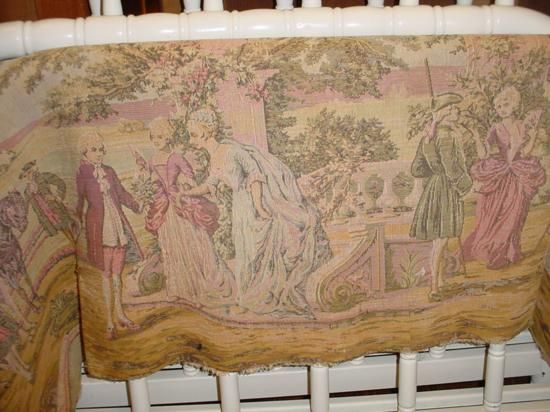 When Louis XIV died, stiff, formal subjects disappeared and everything became an excuse for seductive gallantries. Throughout the reign of Louis XV, the tapestry makers gave free rein to their imagination. Boucher excelled in gallant scenes. This scene is remarkable for the variety and fineness of its colors and the elegance of its details, is an exquisite illustration of his style. This tapestry by Boucher, the king`s artist and protege of Madame de Pompadour, expresses this new style. This tapestry is a "jacquard" and a reproduction (machine-made)...it is an example of the classic work from LES GOBELINS Manufacture with pastel colors. No frame for this tapestry. H: 23.5/ W: 61. Perfect quality. Don't worry for the shipping...we ship from Texas (not from France).