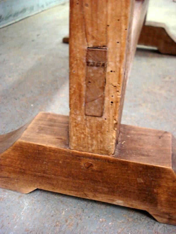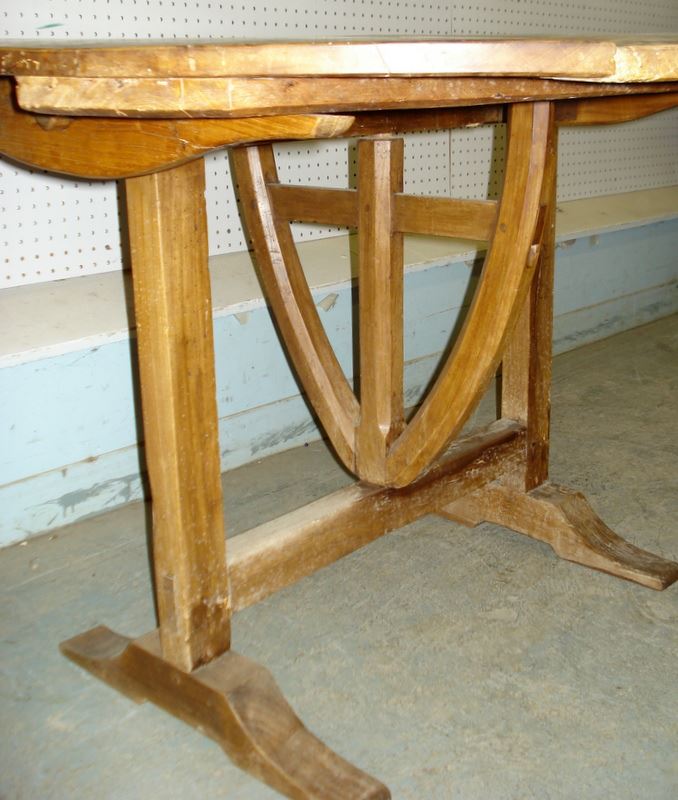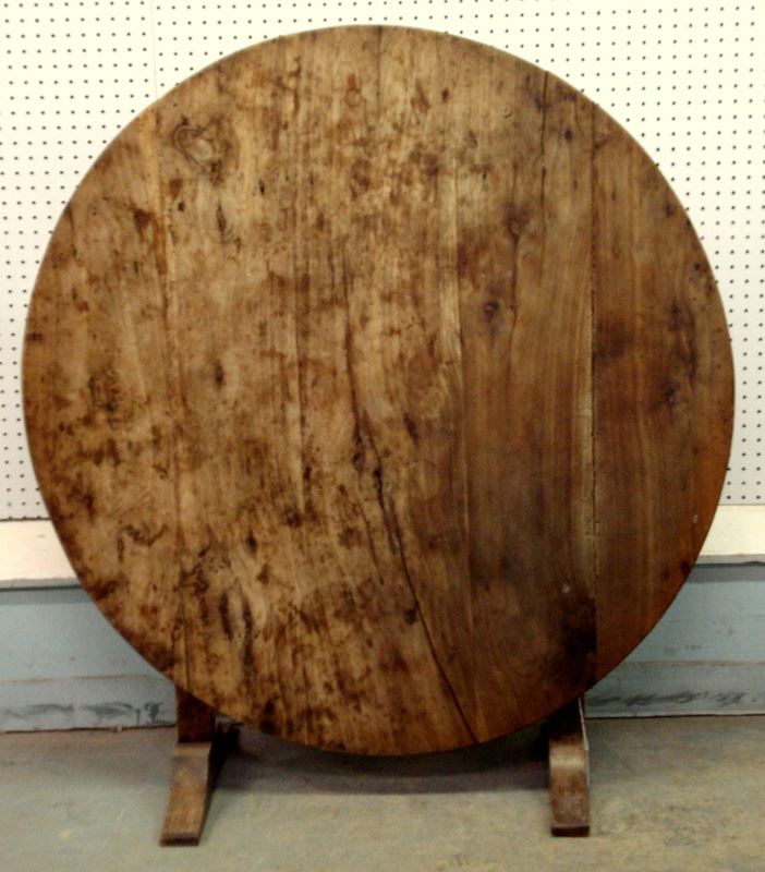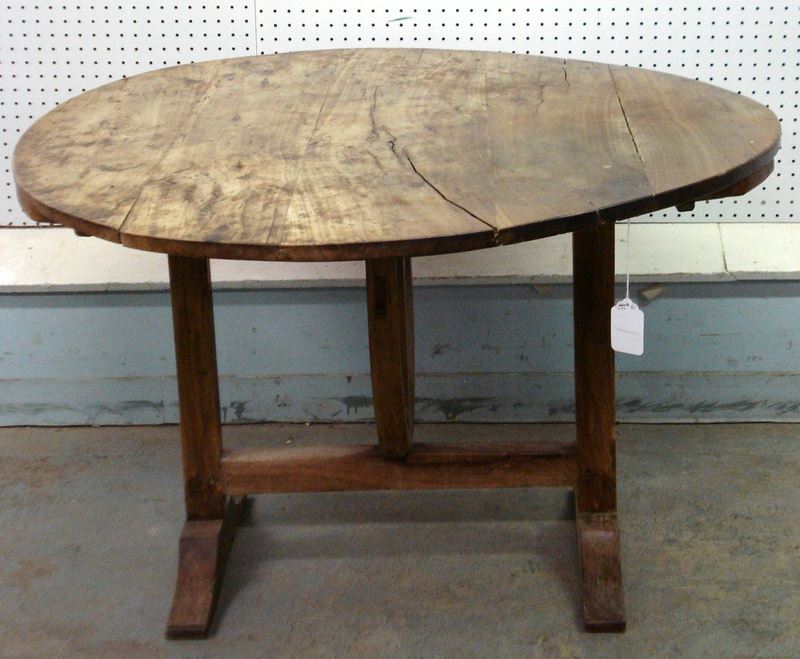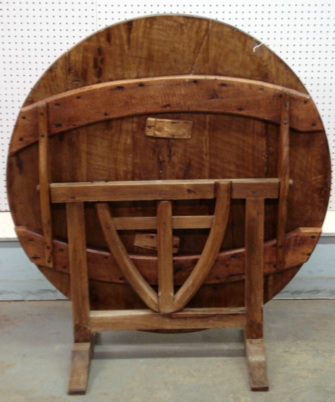 French tilt-top wine tasting table with shoe foot and butterfly swing support. Mortised through cons