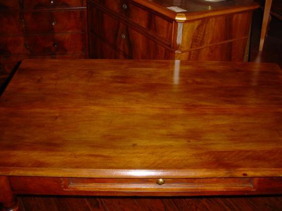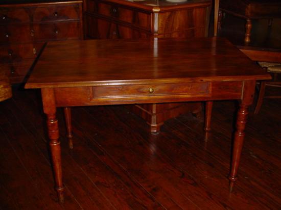 Here is a French table with one drawer, made during King Louis Philippe reign (Circa 1850), by a French cabinet maker from Eastern France (Alsace). This piece made of walnut wood is in very good condition. You can use this piece as a TABLE or as a VERY NICE DESK! Gorgeous patina! For the shipping...don't worry, we ship from Texas (not from France)! h-30.75/ w-47/ d-29.25