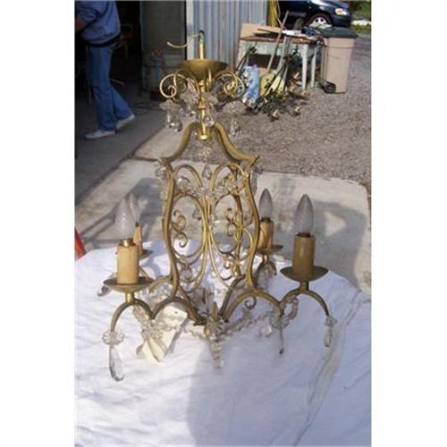 <tr><td>Title:French wrought iron chandelier with crystals</td></tr>
