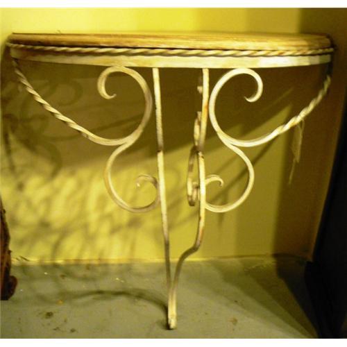 <table width="100%" border="0" cellspacing="0" cellpadding="4"><tr><td><em> </em></td></tr><tr> <td width="100%"> French wrought iron console </td></tr><tr> <td> </td></tr><tr> <td>Reference #: AVL23</td></tr><tr><td>Condition:Good</td></tr><tr><td>Year:c.1940</td></tr><tr><td>Country:France</td></tr><tr><td>Height:38</td></tr><tr><td>Depth:15</td></tr><tr><td>Width:32.5</td></tr><tr><td>Title:French wrought iron console</td></tr><tr><td>Location:ATLANTA GA USA</td></tr></table>