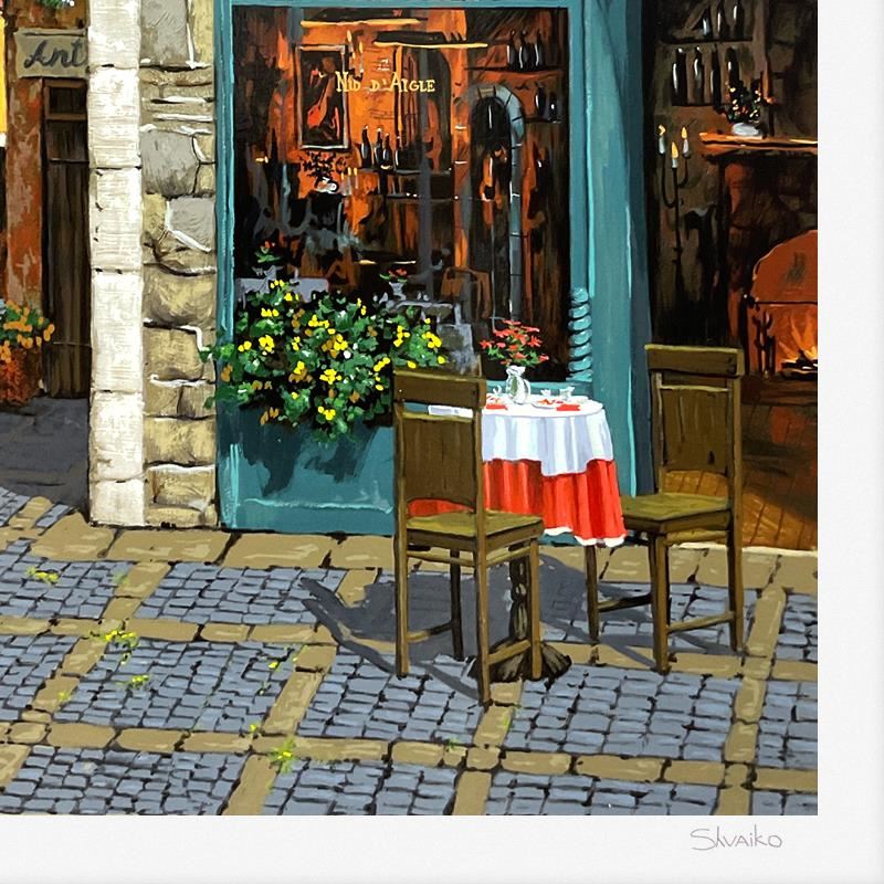 "Fresco and Fountain (White)" is a limited edition printer's proof serigraph on paper by Viktor Shvaiko, numbered 1/3 and hand signed by the artist. Includes Letter of Authenticity. Measures approx. 26.5" x 35" (border), 21" x 30" (image).