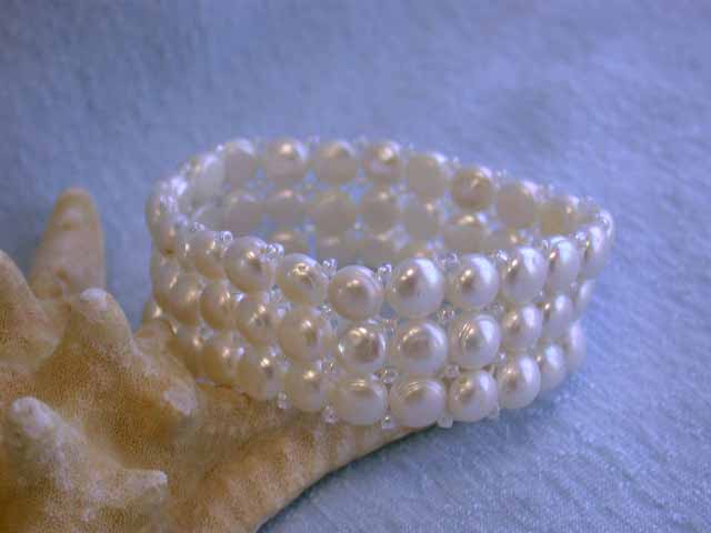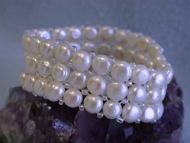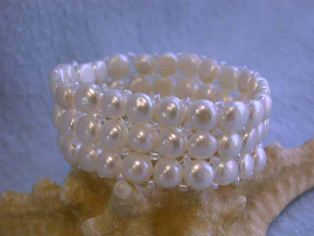 Fresh Water Pearl Bracelet - approximately 6.75 mm (bead size). Width is 3/4 inch and 6 inches wrist size.