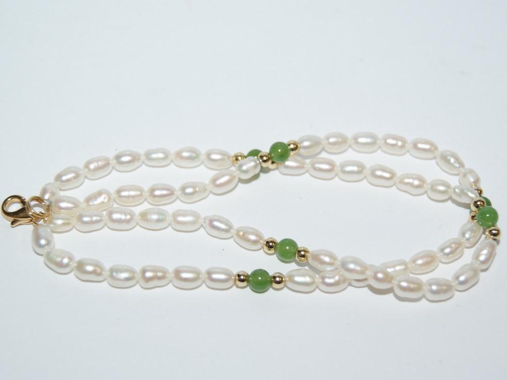 Fresh Water Pearl & Jade Double Stranded Bracelet