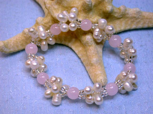 Fresh Water Pearl Bracelet w/ Colored Gemstone