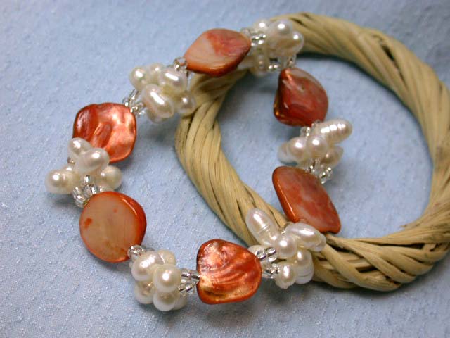 Fresh Water and Mother of Pearl Bracelet approximately 6.5 inches wrist size (stretchable)