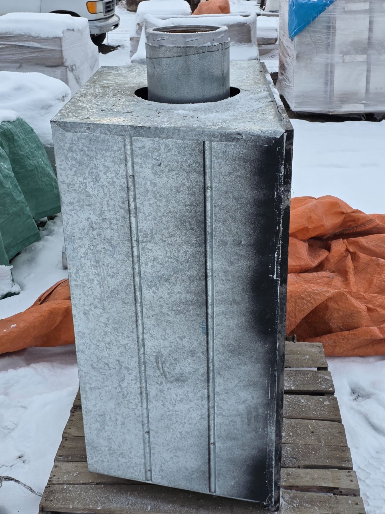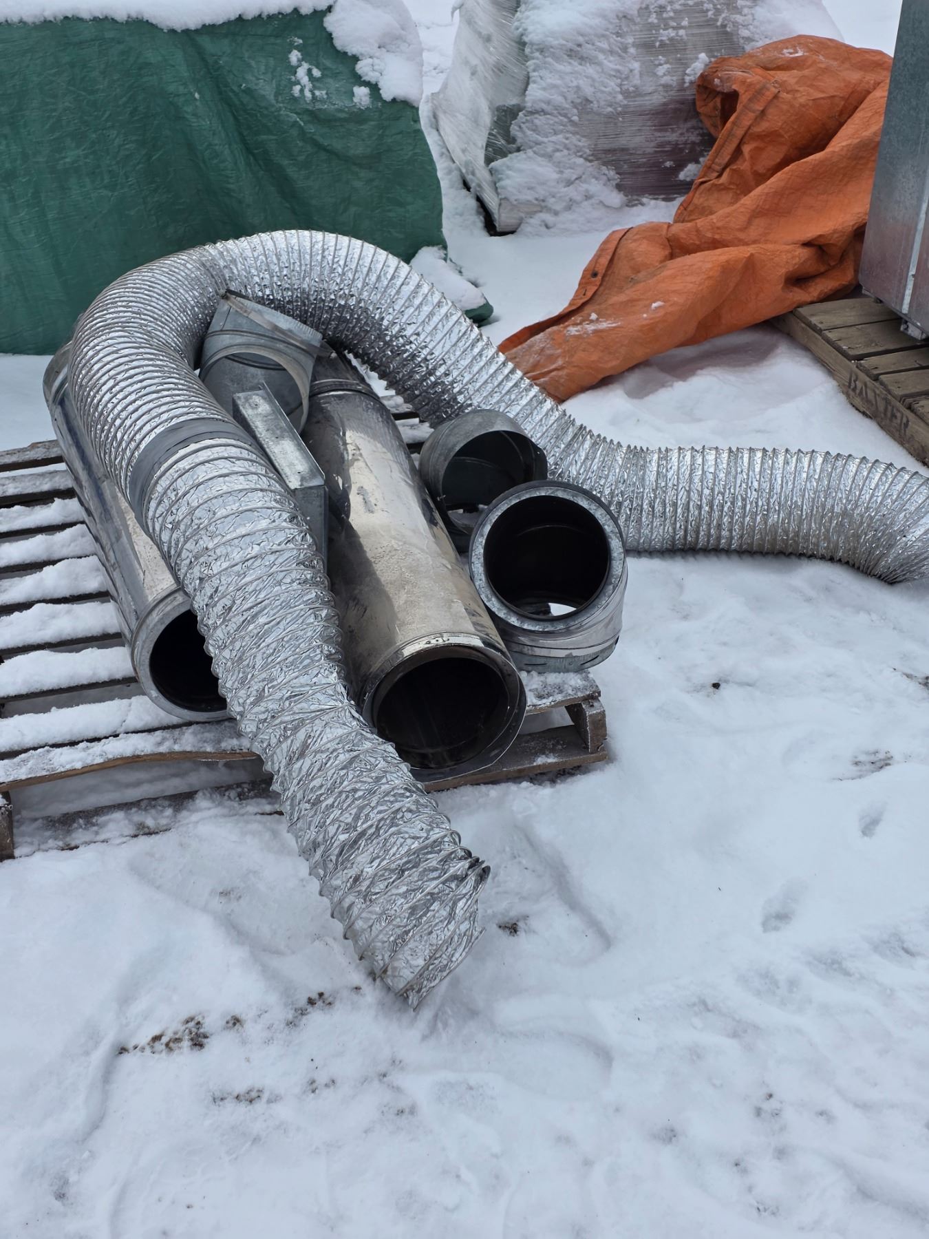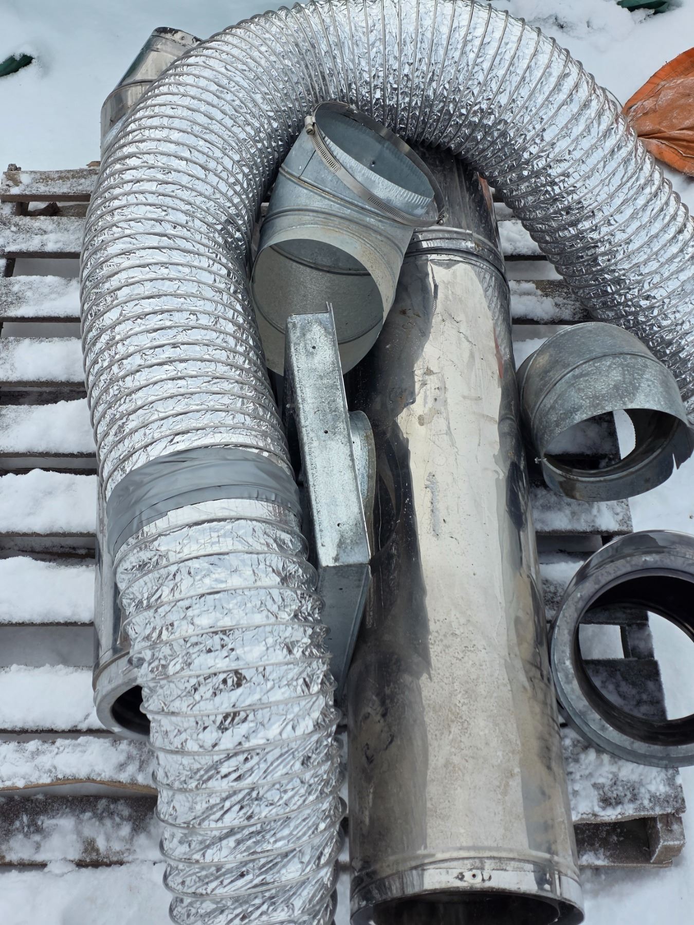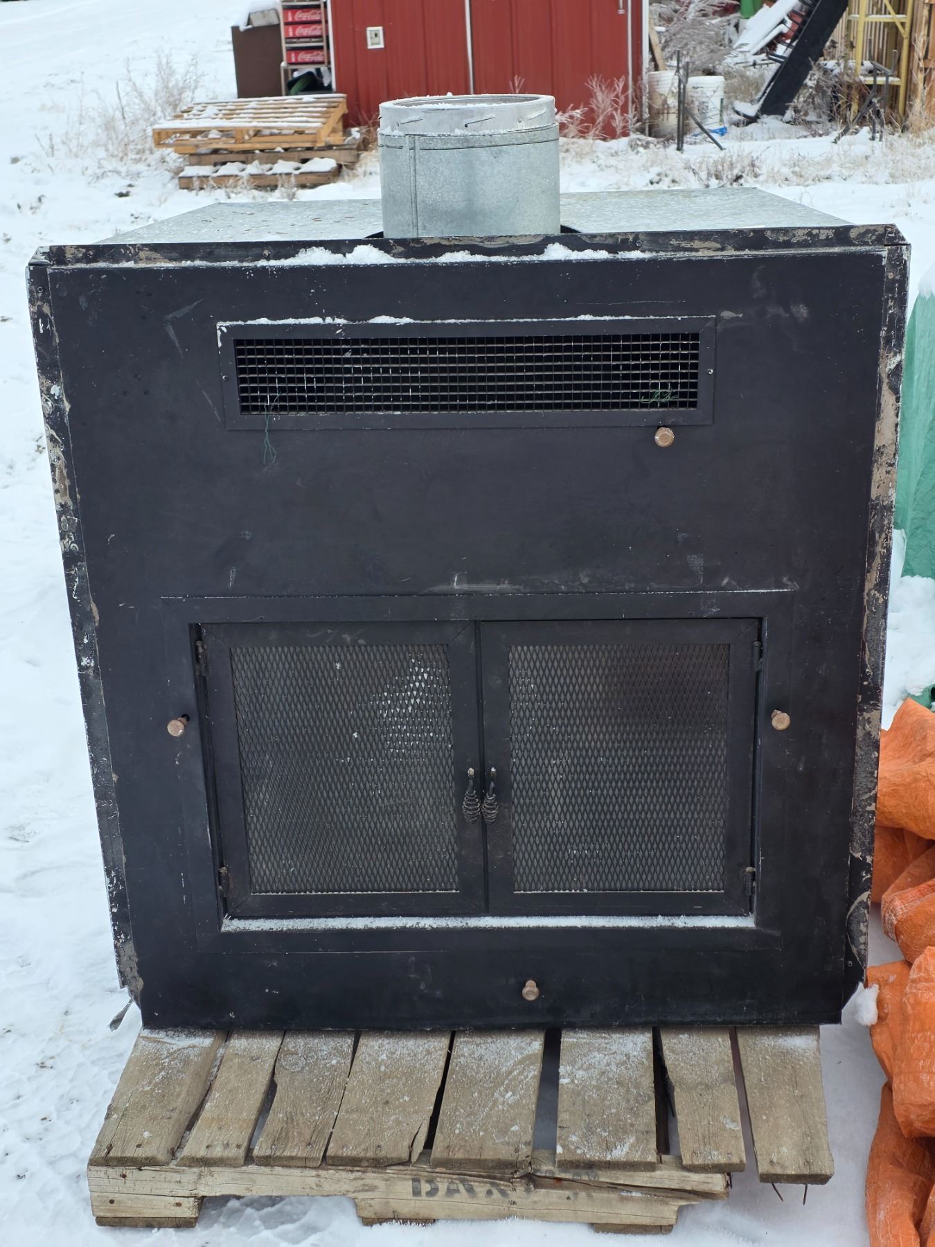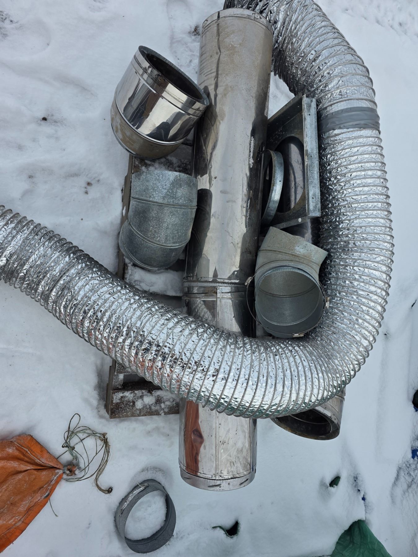 Fresh air Fireplace- only used twice- has sections of chimney, fresh air duct, and hardware