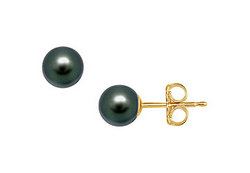A pair of round freshwater cultured pearl stud earrings with a size of 7 mm is made in 14K yellow gold. These pearl studs are available in either screw-back or push-back.