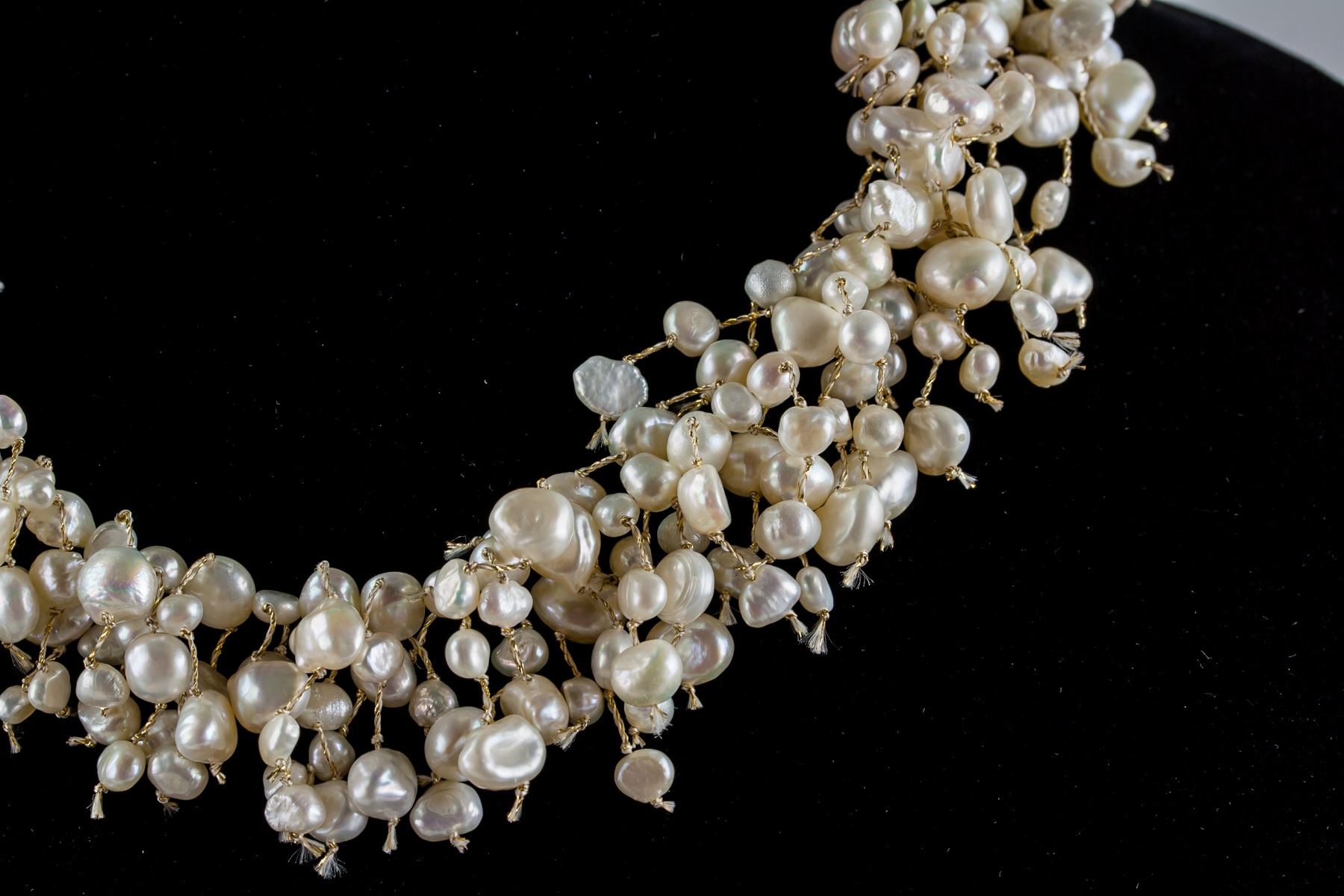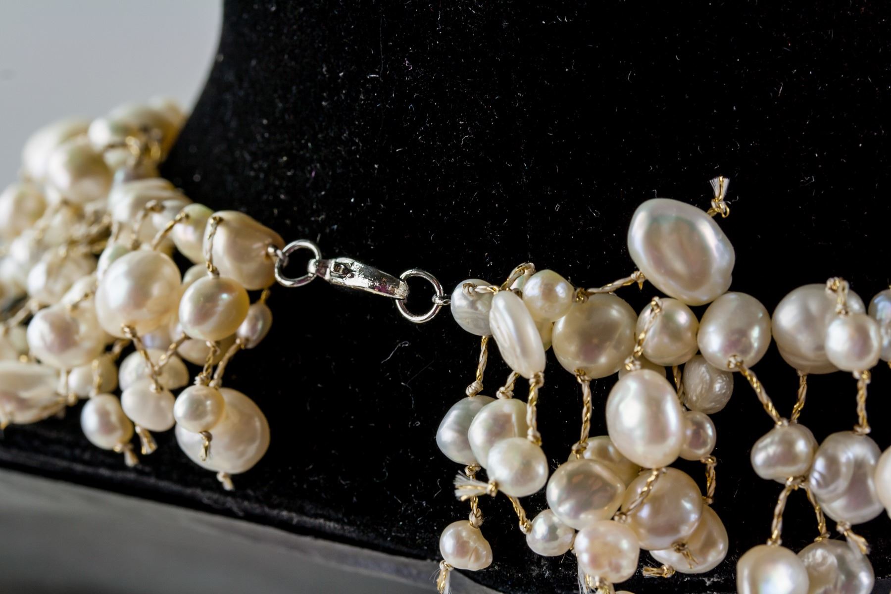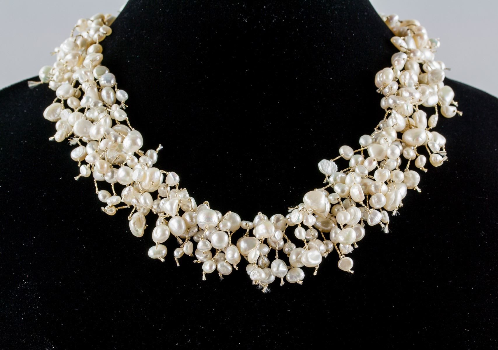 Dangling necklace set with white freshwater pearls. Retail value $450.