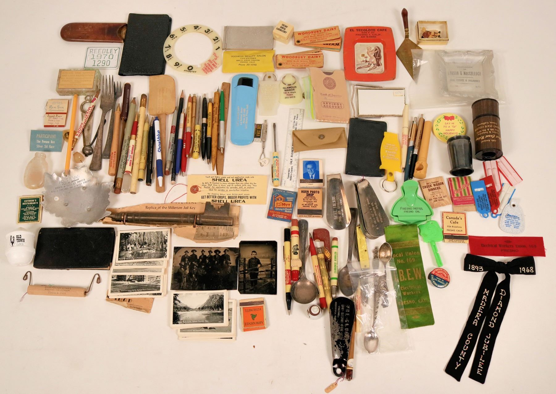 Large group from the Reynolds Collection of small advertising collectibles. Probably more than 100 pieces of everything you can think of. the only thing we took out for other lots are tokens and medals and cork screws and button hooks. Please see the photo. this is a fun collection.