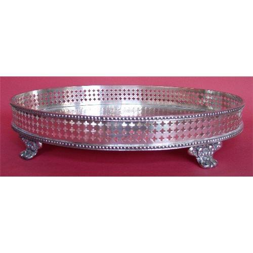 <tr><td>Title:Fretted Silver Plate Oval Footed Tray</td></tr>