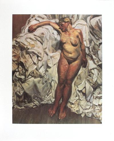 Reference #: ULR133 Artist Name: Freud, Lucian Title: Standing by the Rags (no text) Medium: Offset Lithograph Edition Size: 500 Year: Unknown Paper Size: 31.5 x 25.5 inches Image Size: 24.25 x 20 inches Condition: A-: Near Mint, very light signs of handling Notes: In 1995, in St.-Paul-de-Vence, Jean-Louis Prat, the Fondation Maeght's longtime director, chose to focus an exhibition, on Francis Bacon and Lucian Freud . Prat identified them as "the prominent actors in the English school and in the School of London, which, albeit little known and invariably badly exhibited, is held together by tenacious individualism." For the occasion, the Fondation Maeght released this limited edition reproduction "Standing by the Rags" on heavy stock paper.