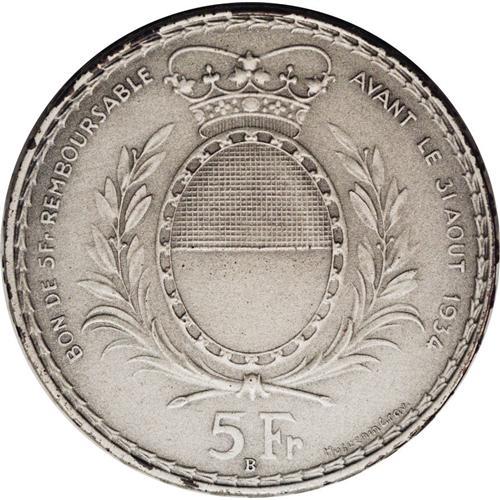 Fribourg. Shooting festival Matte Proof 5-Francs 1934-