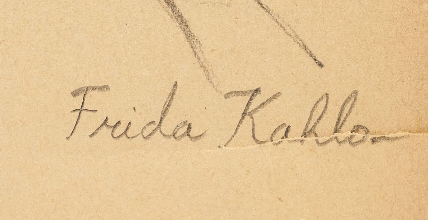 Charcoal on paper. Featuring portrait of Frida Kahlo. Signed "Frida Kahlo" in the bottom right corner. Attributed to Frida Kahlo (1907-1954, Mexican). 40 x 28 cm (15.75 x 11 inches). Provenance: This lot carries limited provenance from a Southern Ontario estate