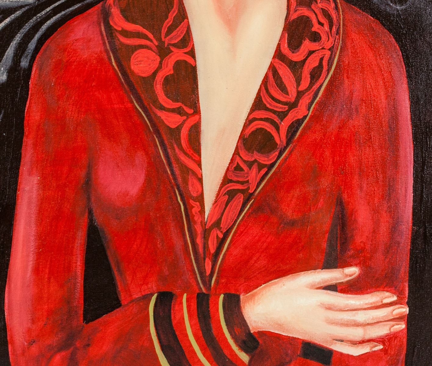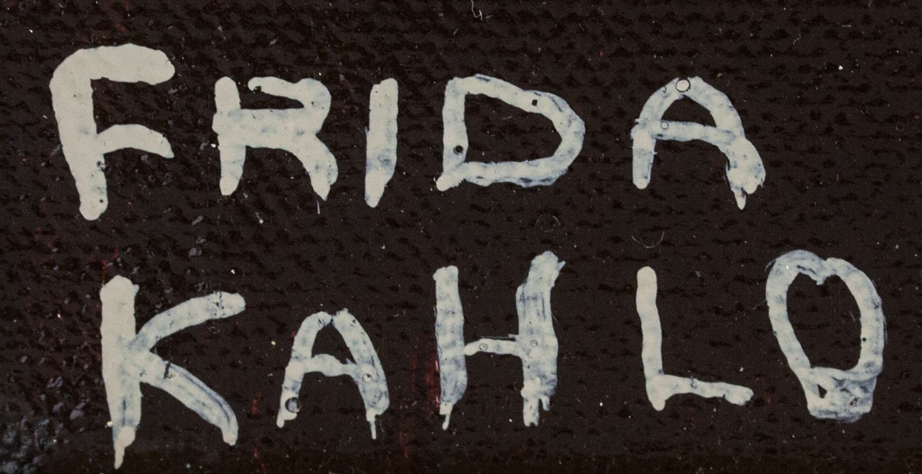 Oil on canvas, framed. Featuring a self-portrait. Signed FRIDA KAHLO on the lower left corner. Stamped BANCO de MEXICO on verso. Label affixed to verso inscribed FROM THE GALLERIES OF ASSOCIATED AMERICAN ARTISTS 711 FIFTH AVENUE NEW YORK 99, NY. Attributed to Frida Kahlo (1907-1954, Mexican). 70 x 50 cm (27.6 x 19.7 inches). Framed size: 78 x 57.5 cm (30.7 x 22.6 inches). PROVENANCE: Southern Ontario estate